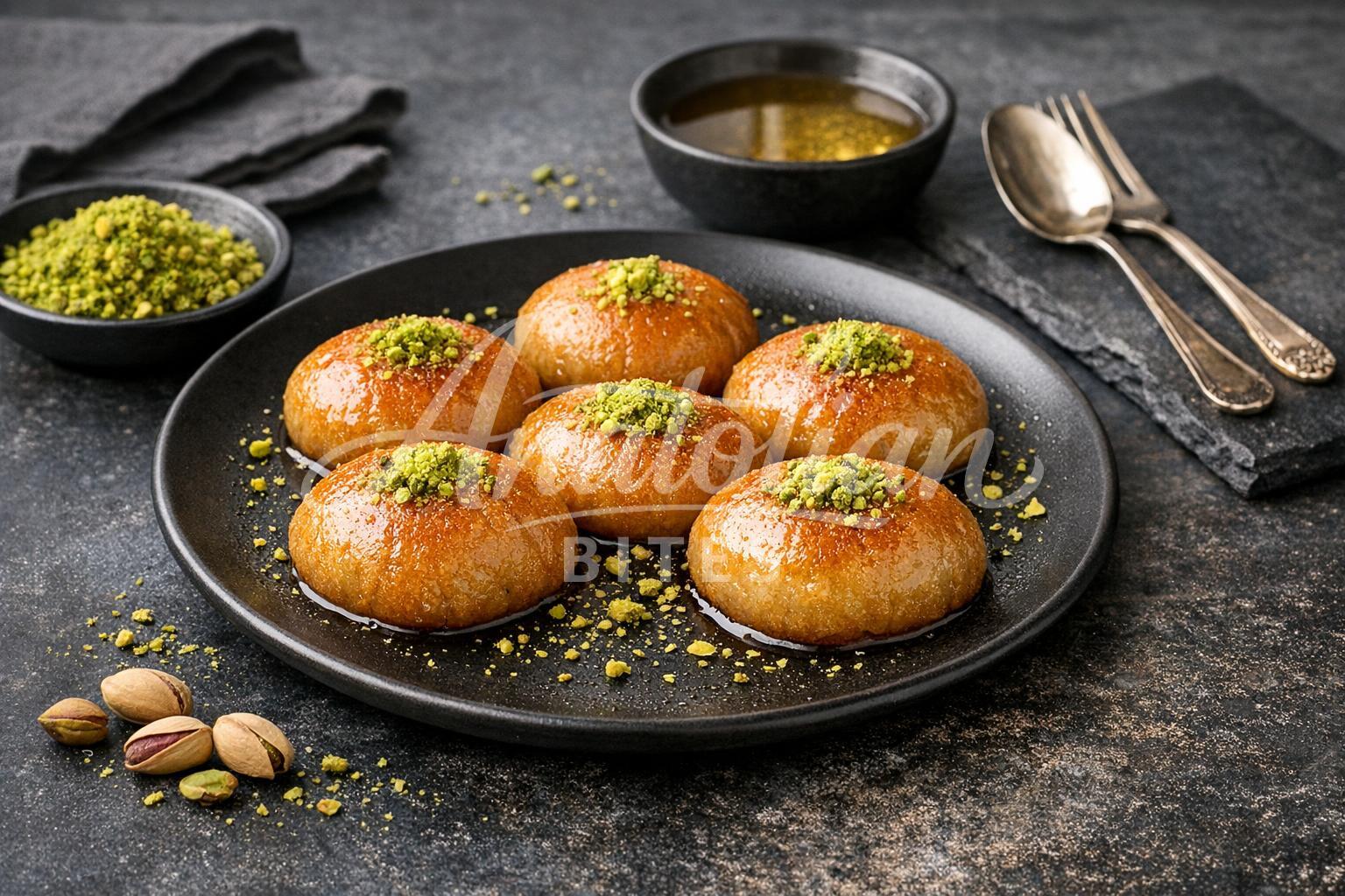 Diese zarten, runden Grießkekse schmelzen förmlich auf der Zunge und sind durchdrungen von süßem, aromatischem Sirup. Die goldbraune Oberfläche verbirgt eine weiche, saftige Textur mit dezenten Mandelnoten. Ein unwiderstehliches türkisches Dessert, das jeden Gaumen verzaubert.