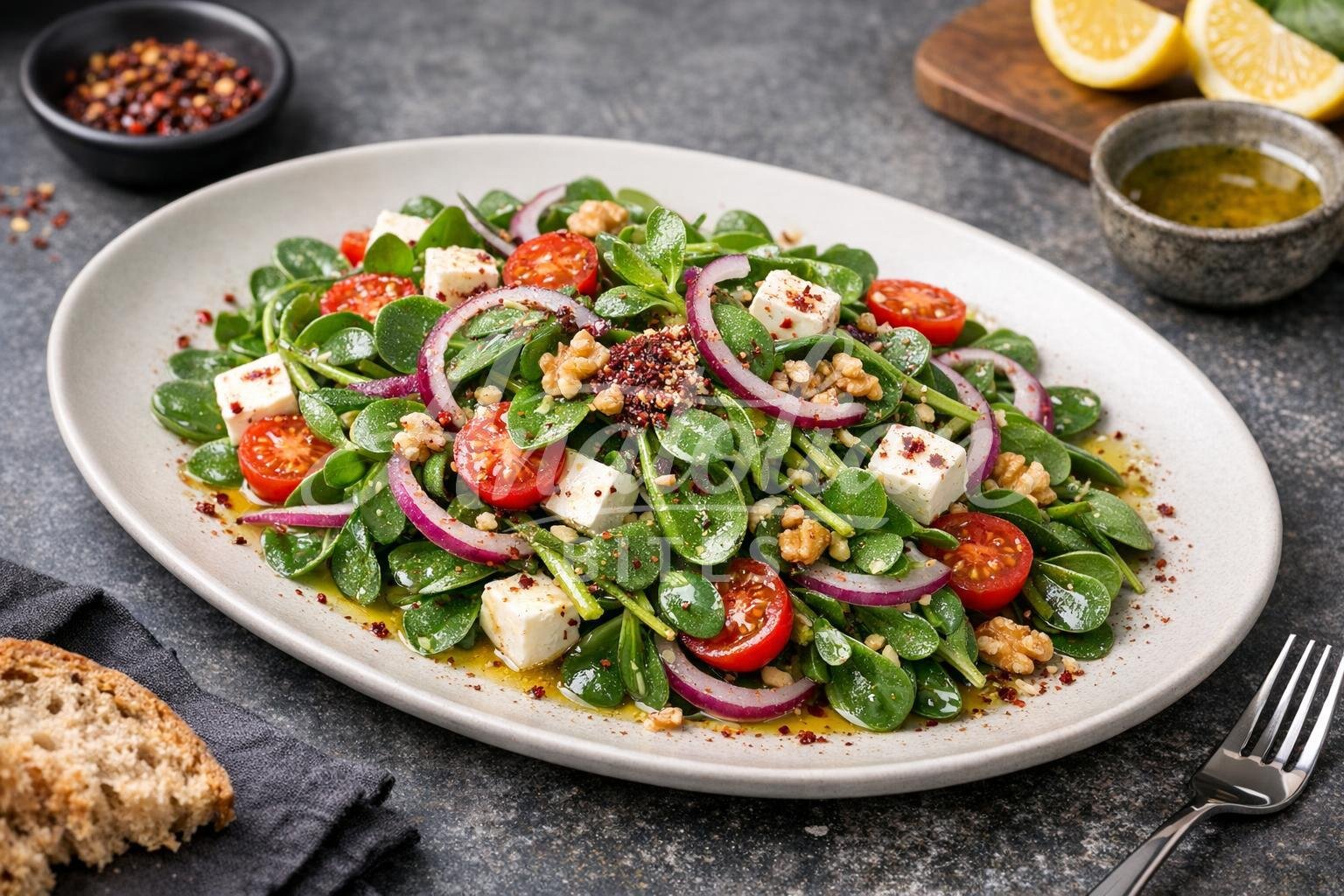 Dieser erfrischende türkische Salat schmeckt leicht säuerlich und knackig durch den wilden Portulak. Die grünen, fleischigen Blätter werden mit cremigem Joghurt-Dressing angemacht und ergeben einen leuchtend grünen, gesunden Salat. Ein perfektes Sommergericht, das schnell zubereitet ist und wunderbar zu gegrilltem Fleisch passt.