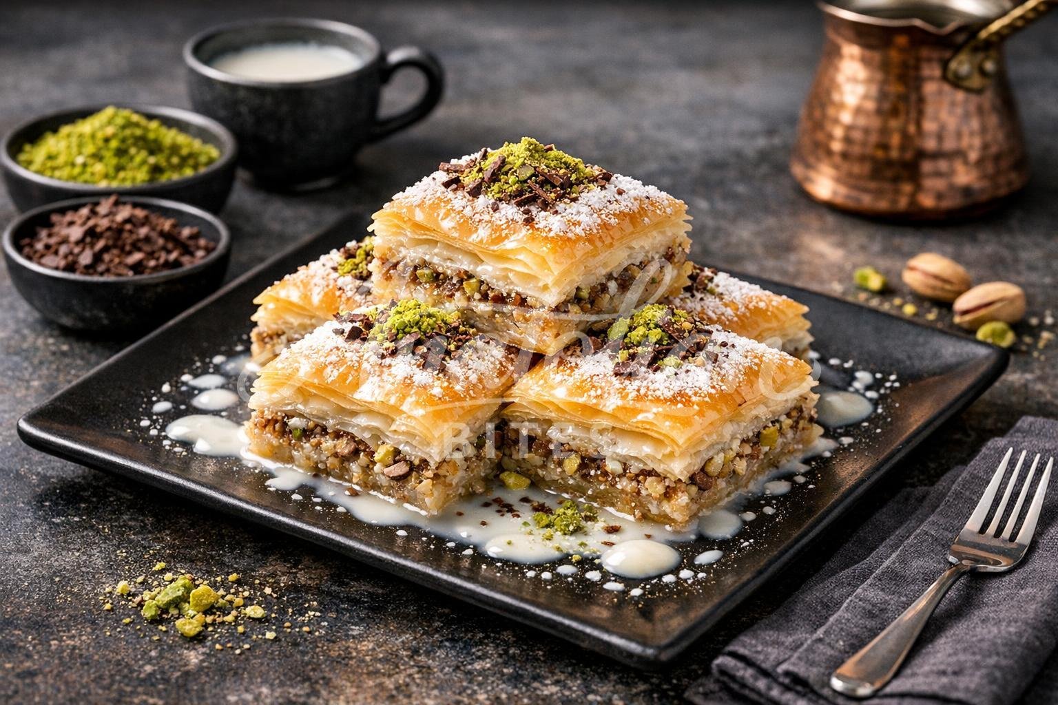 This unique baklava is soaked in a cold milk syrup instead of traditional sugar syrup, creating an incredibly moist and creamy texture. The delicate phyllo layers become soft and pudding-like while maintaining their distinct structure. It's a refreshing twist on the classic dessert that's perfect for those who find regular baklava too sweet.