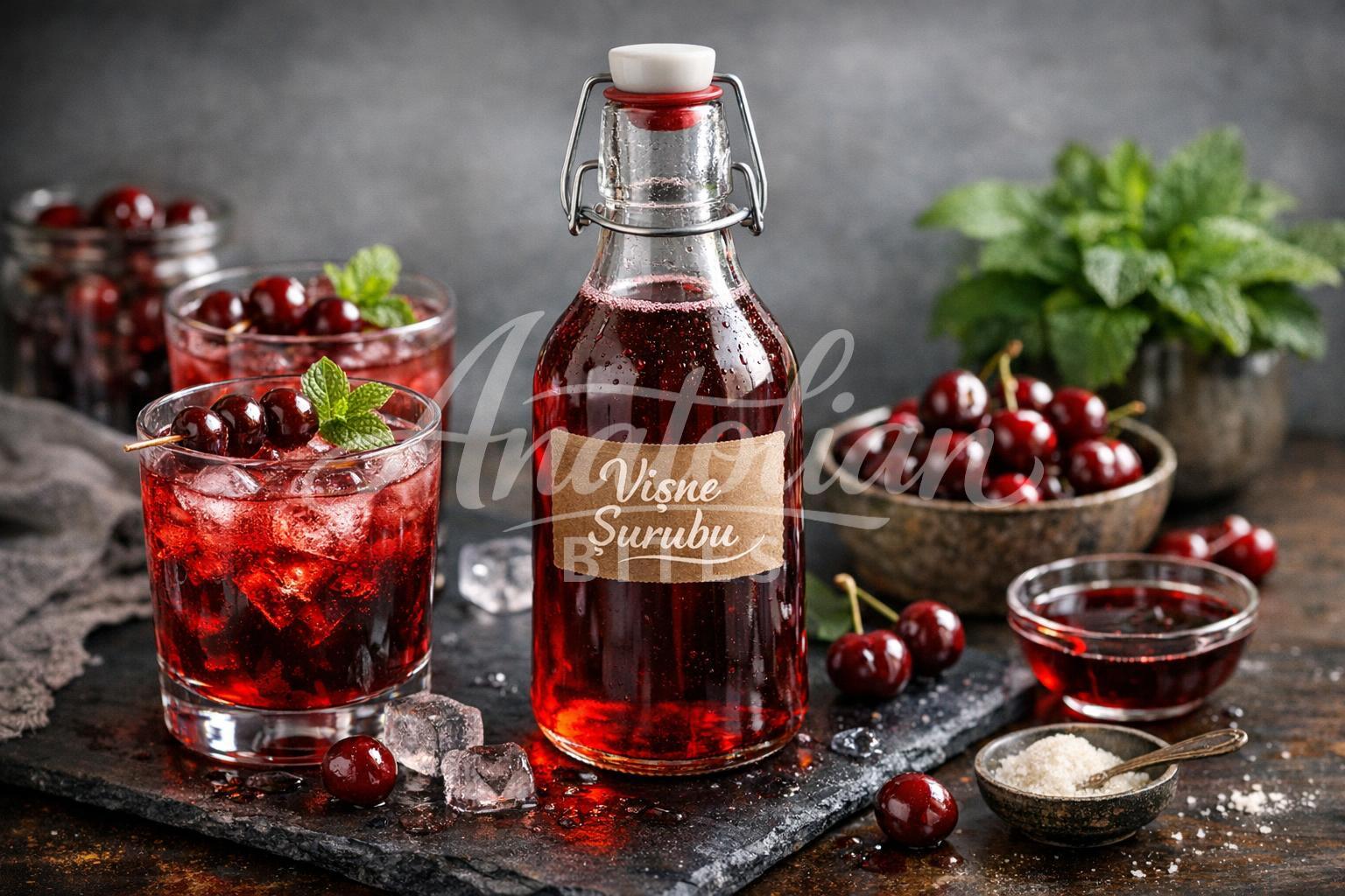 This vibrant ruby-red juice delivers a perfect balance of tart and sweet flavors with an intensely fruity aroma. The deep crimson liquid has a beautiful jewel-like appearance that's as striking as it is refreshing. It's the ideal summer drink that captures the essence of Turkish sour cherries in every sip.