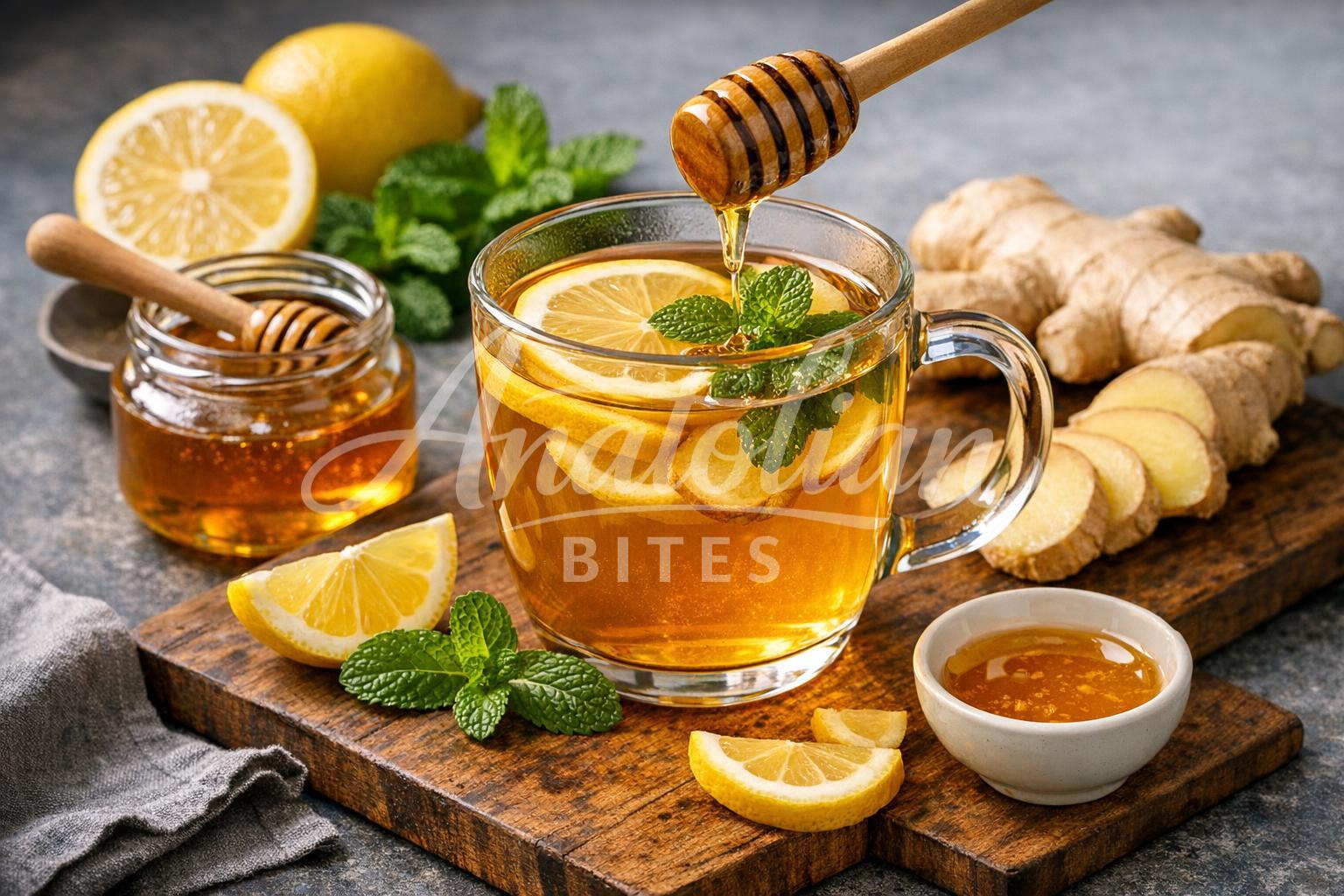 This warming Turkish herbal tea delivers a bold, spicy kick from fresh ginger balanced with bright lemon tartness and natural honey sweetness. The golden amber liquid releases an invigorating aroma that fills your kitchen with comforting warmth. Perfect for cold winter evenings or whenever you need a natural immune boost and soothing comfort.