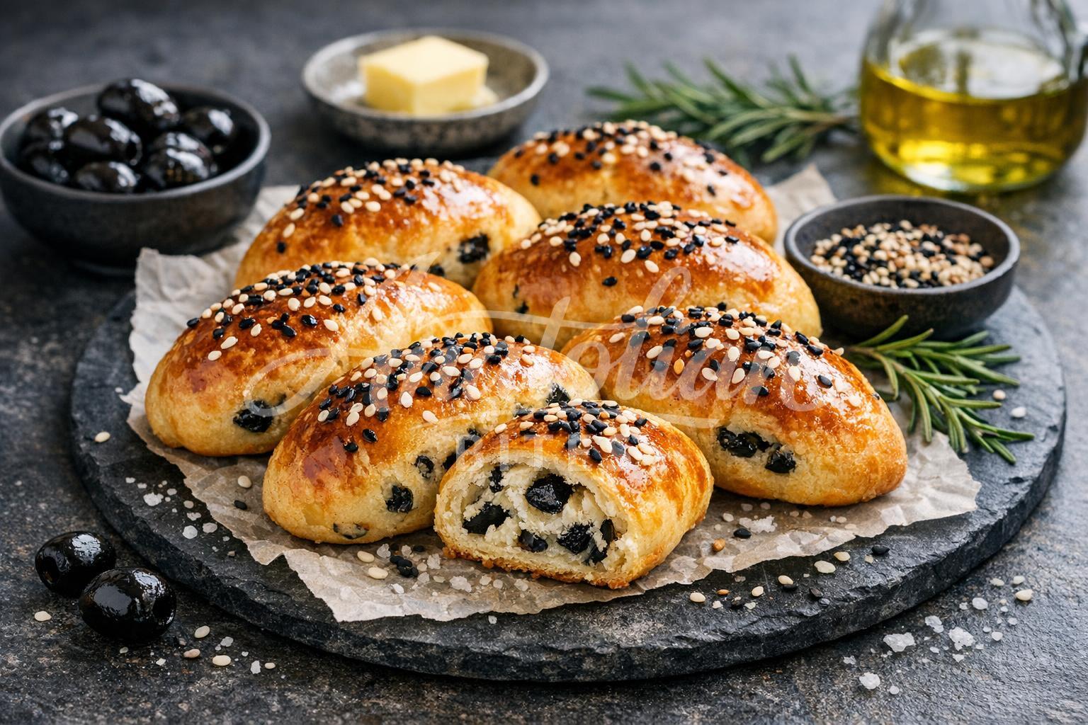 These savory Turkish pastries have a tender, yeasted dough filled with salty black olives and herbs. Golden-brown and slightly crispy on the outside with a soft, pillowy interior. Perfect for breakfast, picnics, or any time you crave a satisfying handheld treat.