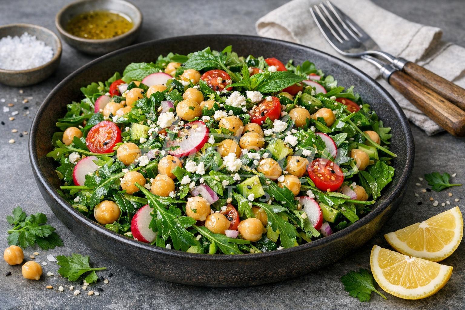Turkish Chickpea Herb Salad with Fresh Vegetables